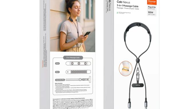 3’ü 1 arada masaj özellikli kablo, dahili masaj moduyla telefon veya powerbank üzerinden enerji alarak masaj yapıyor. Boyun bölgesine yerleştirildiğinde titreşimli başlıkları sayesinde hafif basınç uygulayarak kan dolaşımını hızlandırıyor ve kaslardaki gerginliği azaltıyor. Uzun süre bilgisayar başında çalışan, telefonuna bağlı yaşayan ya da gün boyu hareket halindeki kullanıcılar için tasarlanan bu yenilikçi kablo, üç farklı masaj modu sayesinde kişisel ihtiyaca göre ayarlanabiliyor.
