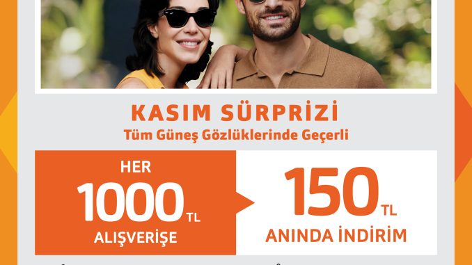 Yılın heyecanla beklenen indirim dönemini “Kasım Sürprizi” ile karşılayan Atasun Optik, birbirinden şık tasarımlara sahip dünyaca ünlü markaların güneş gözlüklerinde, 21-26 Kasım 2023 tarihleri arasında müşterilerine özel bir kampanya sunuyor. Her 1.000 TL değerindeki güneş gözlüğü alışverişlerinde, mevcut indirimlere ek anında 150 TL indirim uygulanan kampanya, tüm Atasun Optik mağazaları, www.atasunoptik.com.tr ve Atasun Optik mobil uygulaması üzerinden yapılacak güneş gözlüğü alışverişlerinde geçerli olacak.